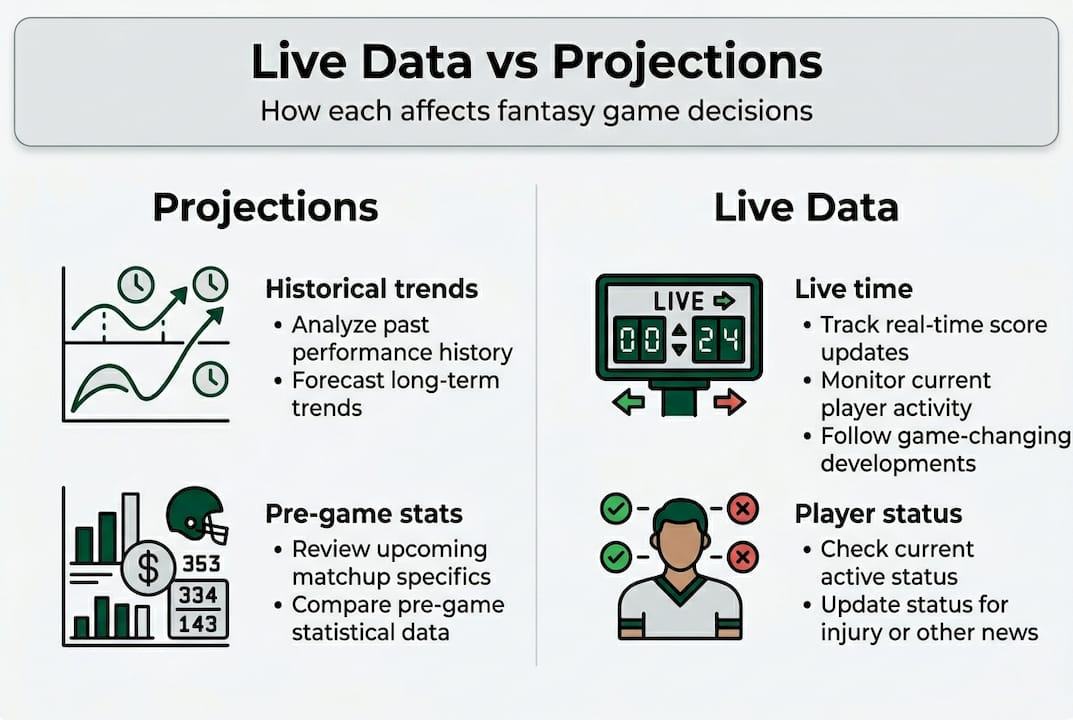 Here's what most players still get wrong: they treat projections as the final word and live data as a bonus feature. It's actually the other way around.