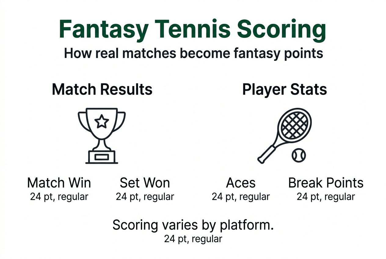 Fantasy tennis scoring translates real match statistics into points for your team. Match wins typically generate the highest point values, rewarding players who advance through tournament rounds. Sets won provide additional scoring, recognizing performance even in losses. Individual statistics like aces and break points add granular scoring based on playing quality.